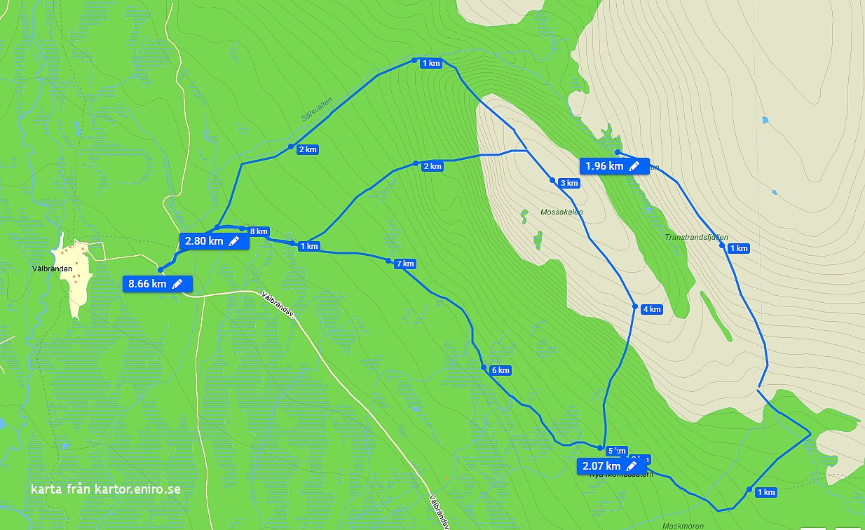 Tillbaka tar vi normalt samma väg såvida inte du känner för att gå obanat via Sälsvalla mot Vålbrändan.