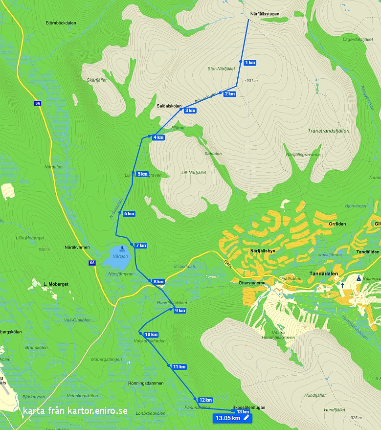 leden med Lill-Närfjällets vänliga norra sida parallellt med oss till vänster.